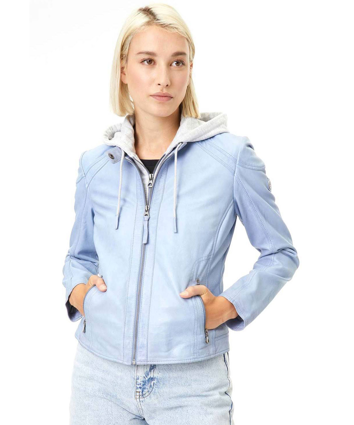 Cazadora de piel con capucha para mujer
